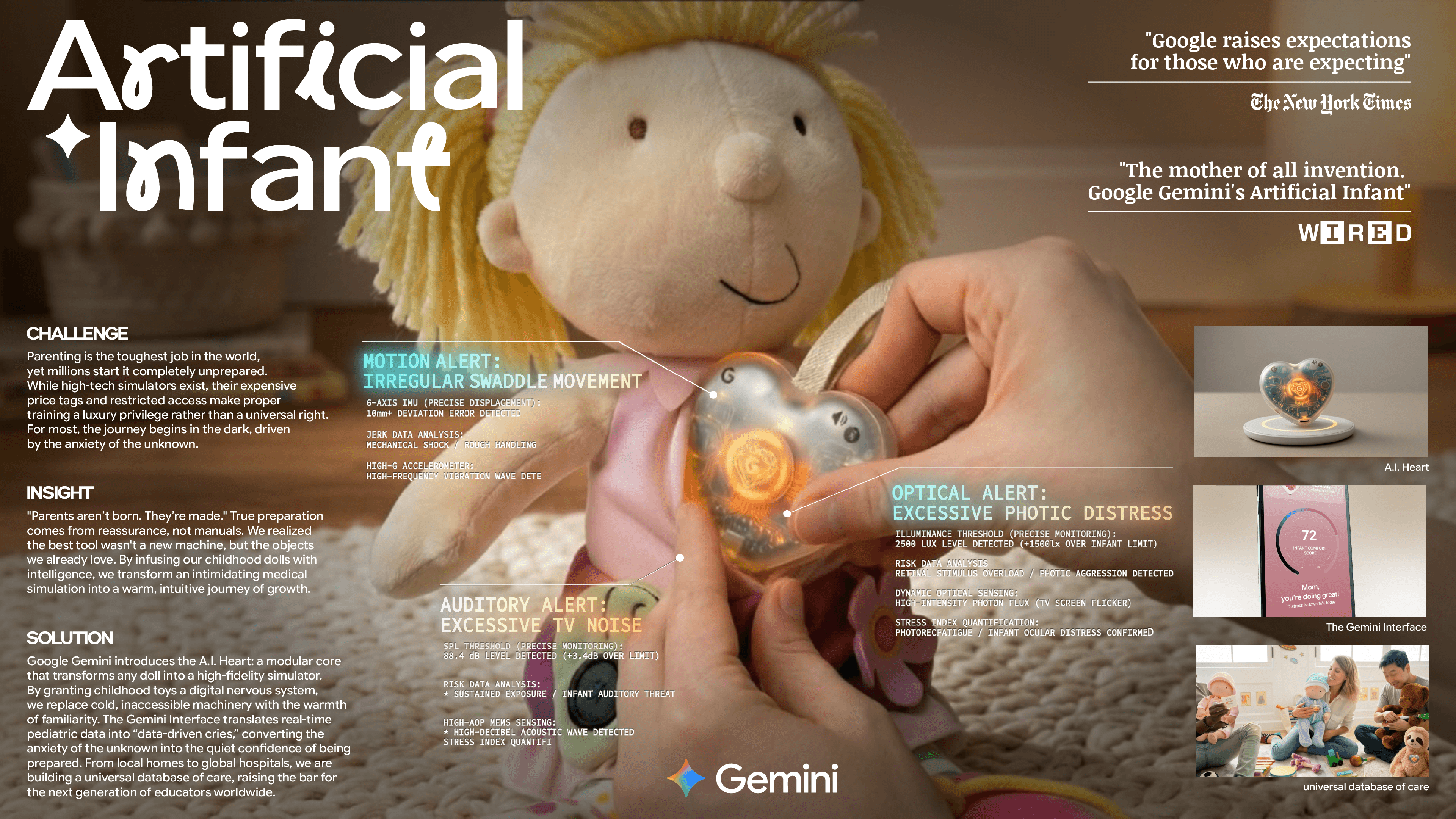 Gemini becomes the very first baby for soon-to-be parents. Transform every doll into 'living education' with the world’s smallest and smartest AI heart.