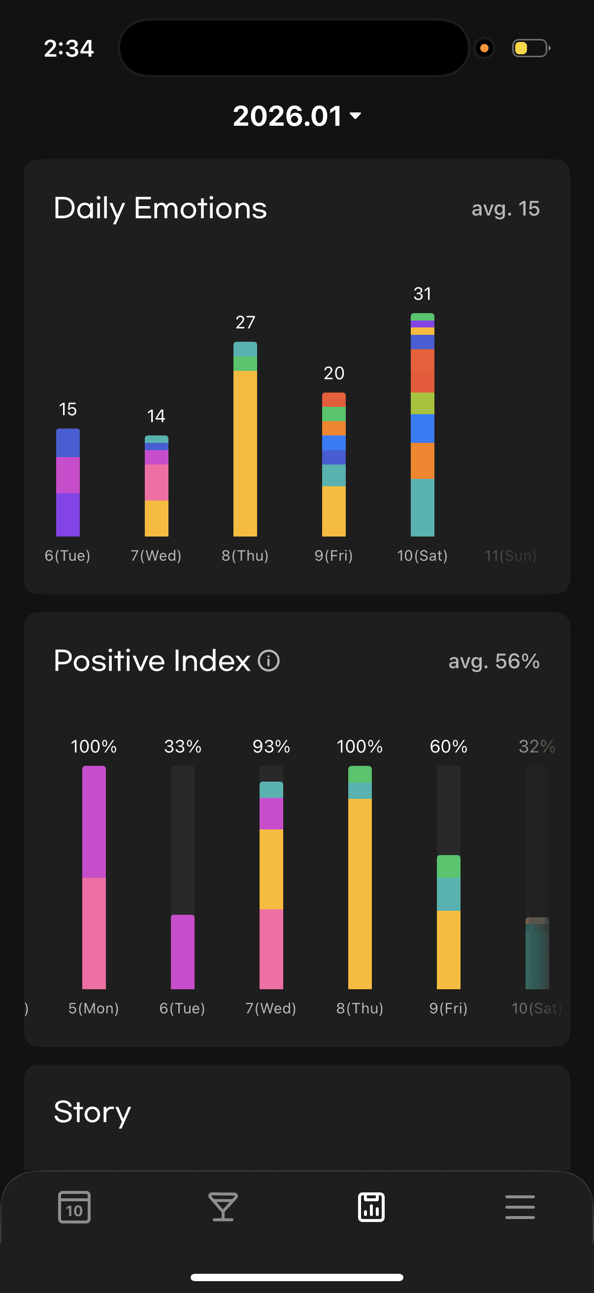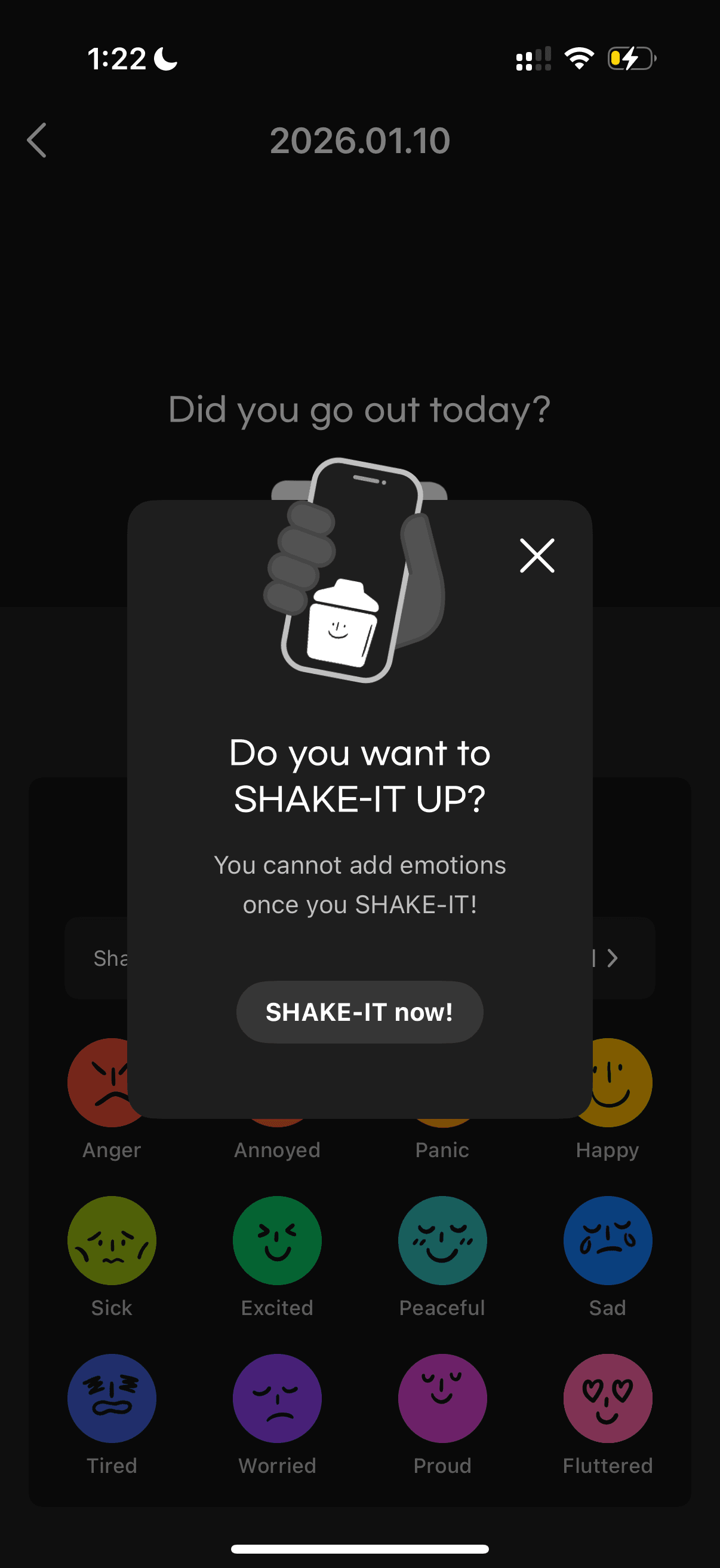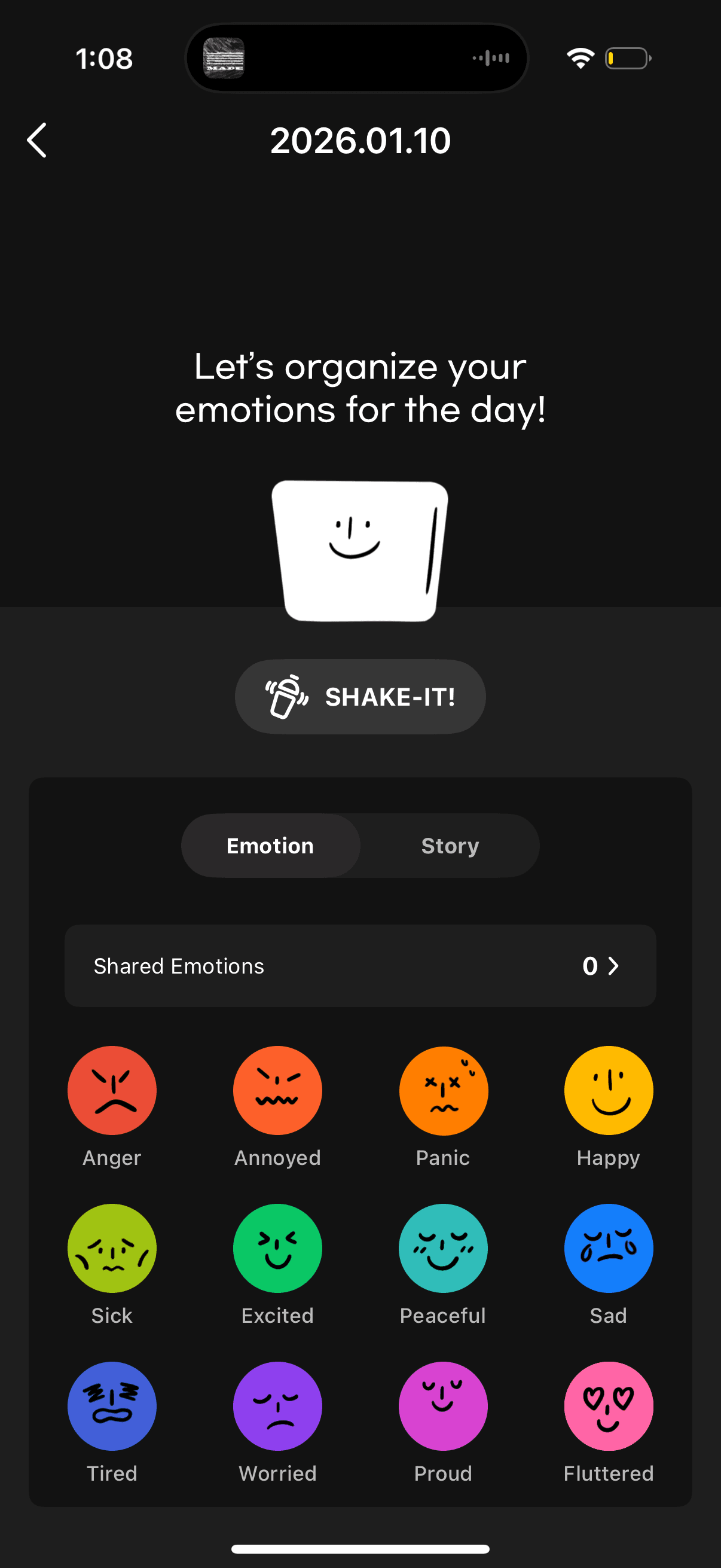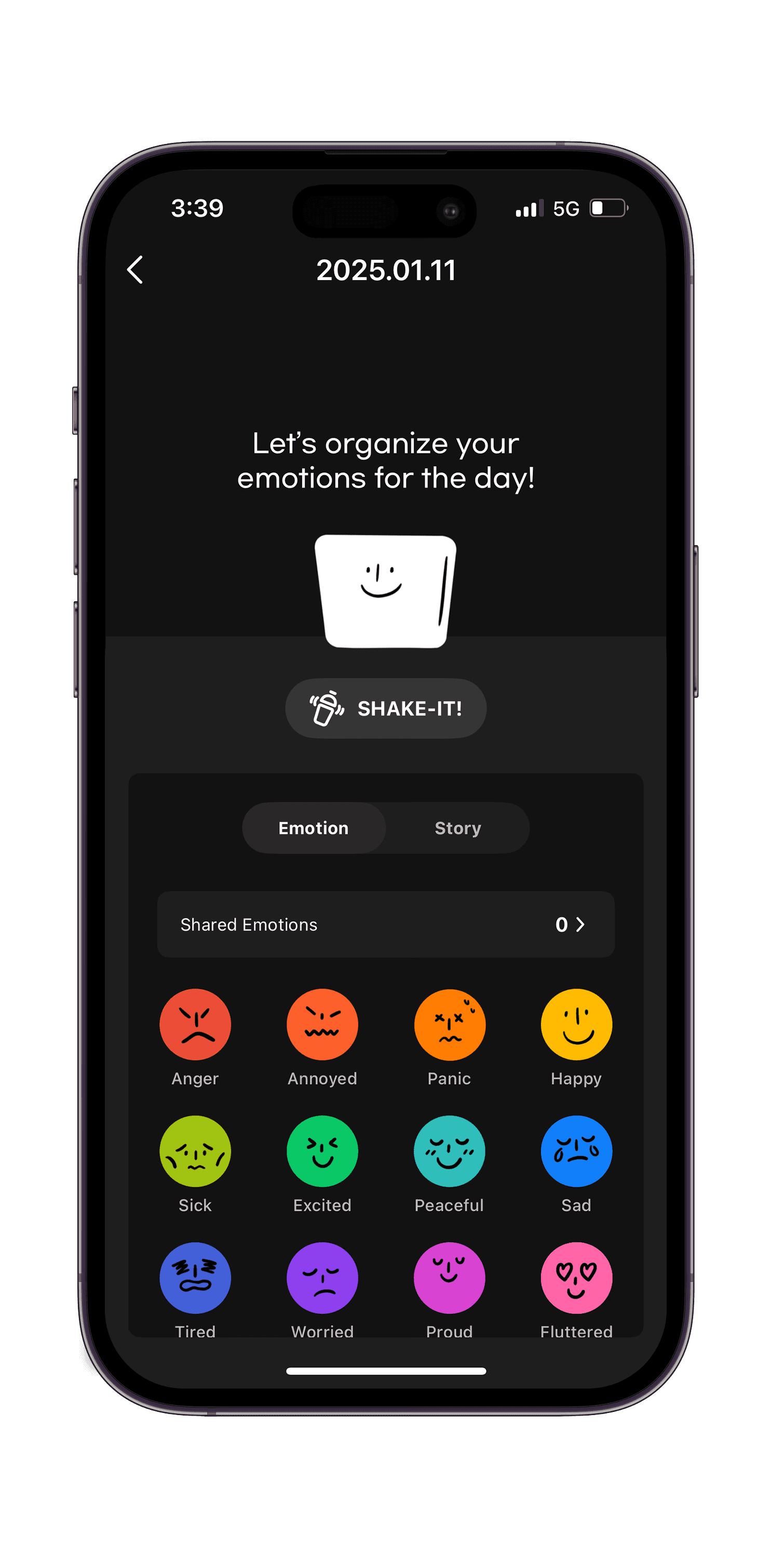 Users freely tap emojis that represent their day.