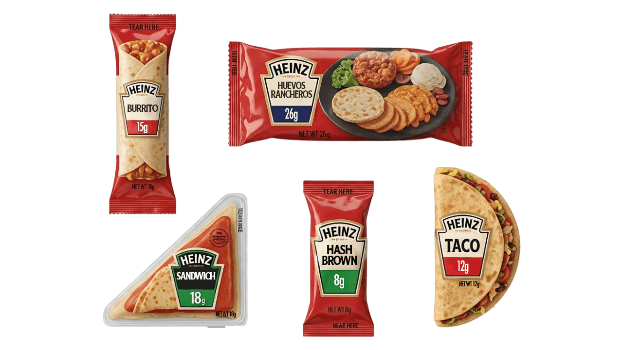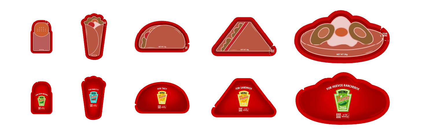 Redesign Heinz ketchup packets with the perfect portion for popular breakfast items.